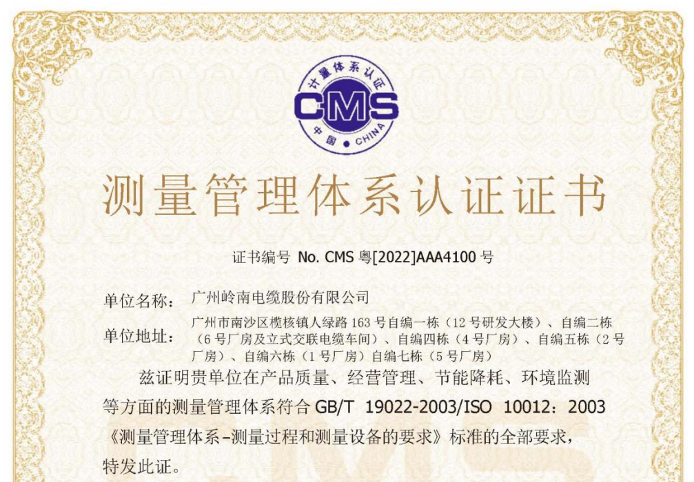近日,智光電氣控股公司廣州嶺南電纜股份有限公司(以下簡稱“嶺南電纜”)測量管理體系順利通過認證審核,榮獲AAA級“測量管理體系認證證書”,標志著嶺南電纜在產品質量、經營管理、節能降耗、環境監測等方面的...