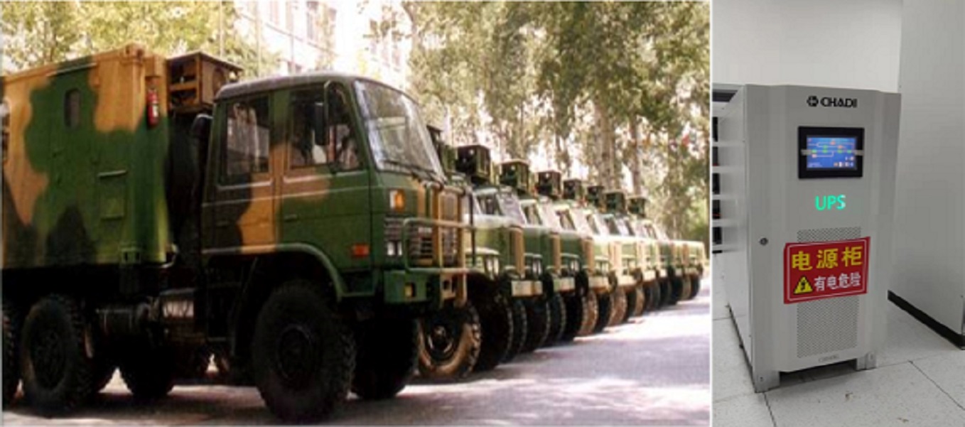2003年起,創電科技高可靠的CDD4+1冗余并機UPS系統(UPS單機功率50KVA)服務于國防建設中,典型應用有神六飛船地面搜救系統、海軍雷達基地、空軍空管系統和火箭軍基地等。該系統成功應用于東海艦隊雷達基地,運行良好,得到了用戶的高度認可。2019年創電科技獲批佛山市軍民融合重大科技項目。