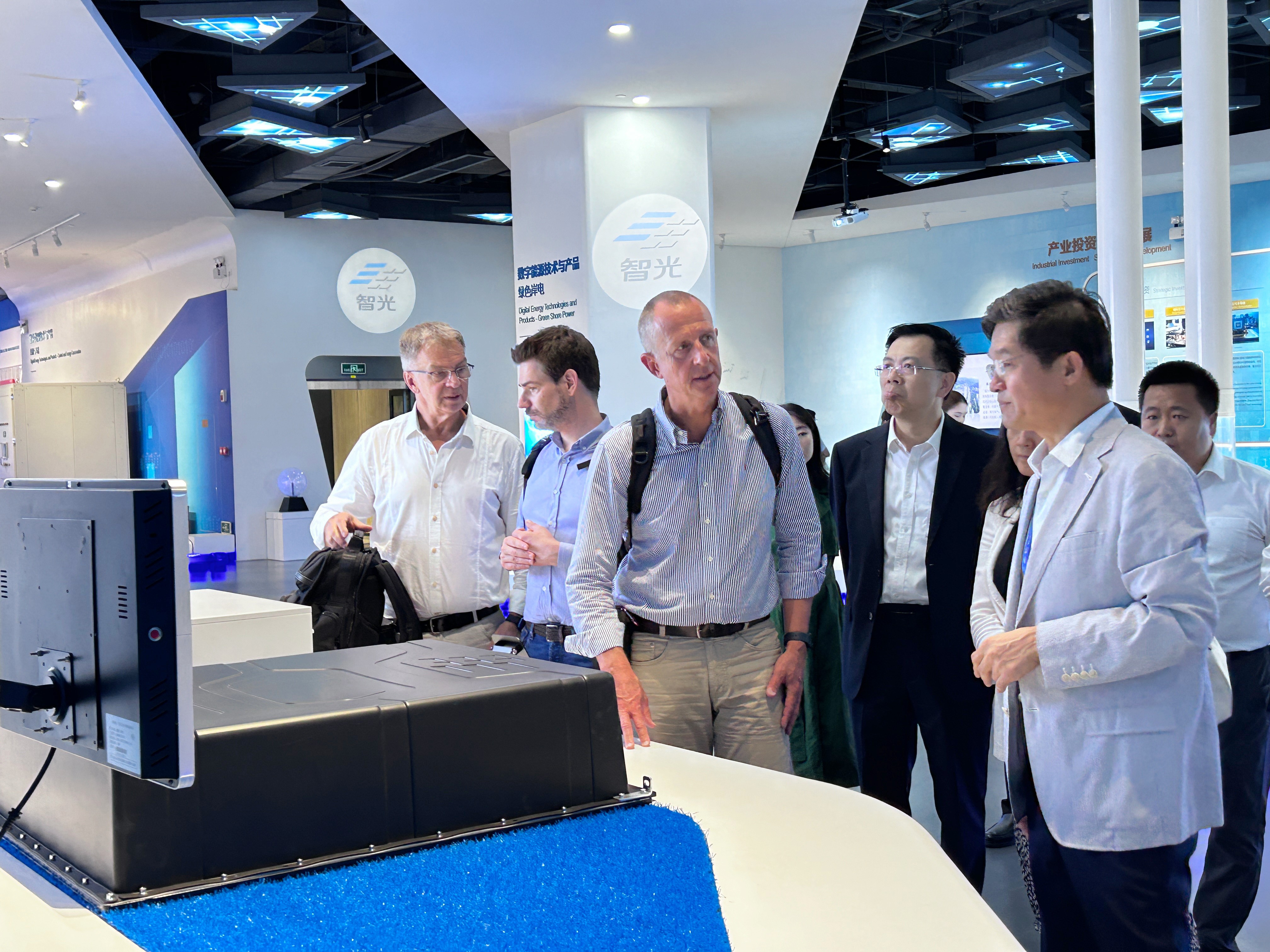 訪問(wèn)期間,代表團(tuán)參觀了智光企業(yè)展廳、綜合能源大數(shù)據(jù)智慧運(yùn)營(yíng)中心及儲(chǔ)能工廠,對(duì)智光在技術(shù)創(chuàng)新和產(chǎn)業(yè)升級(jí)方面的雄厚實(shí)力給予了高度評(píng)價(jià)。座談會(huì)上,三方進(jìn)行技術(shù)交流及業(yè)務(wù)洽談,就各自的技術(shù)優(yōu)勢(shì)、市場(chǎng)定位和發(fā)展戰(zhàn)略進(jìn)行了深入探討。